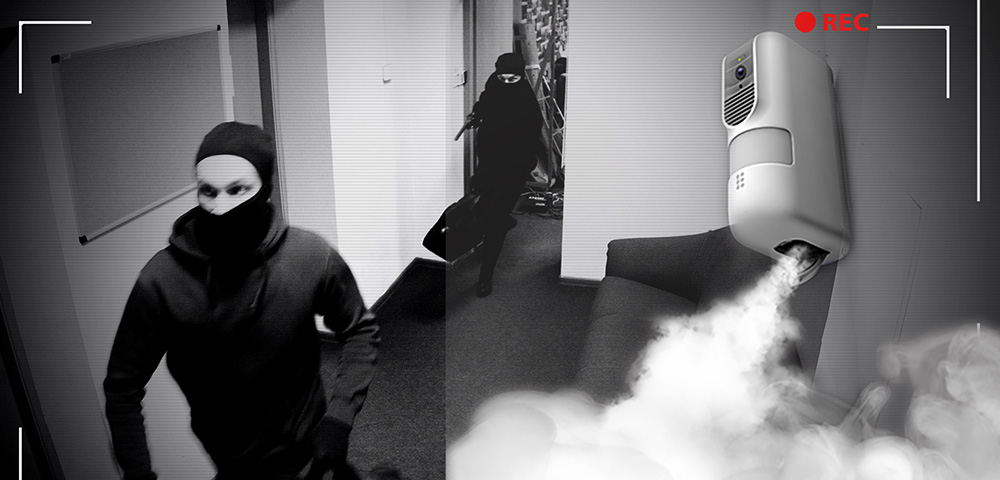 Wenn der PIR-Sensor von MyShield eine Bewegung erfasst, wird die Warnmeldung sofort an die Sicherheitsleitstelle oder direkt an den entsprechenden Nutzer der App weitergeleitet. Gleichzeitig wird eine Audio-Warnung abgespielt, um dem Eindringling zu signalisieren, dass der Bereich überwacht wird. Durch hochauflösende Videos kann überprüft werden, ob es sich um eine sicherheitsrelevante Situation handelt. Sollte die Warnung unbeachtet bleiben, kann MyShield schnell und effektiv die Räumlichkeiten mit harmlosem, jedoch stark desorientierendem Rauch füllen, um den Eindringling abzuschrecken. Der MyShield-Rauchbehälter lässt sich einfach austauschen und erzeugt einen ungiftigen, nicht klebrigen Rauch, der sich schnell wieder verflüchtigt.