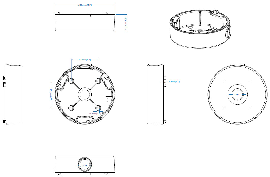 Kamera Anschlussbox für Wand- und Deckenmontage, für PTZ Dome INP-54M2812M0A