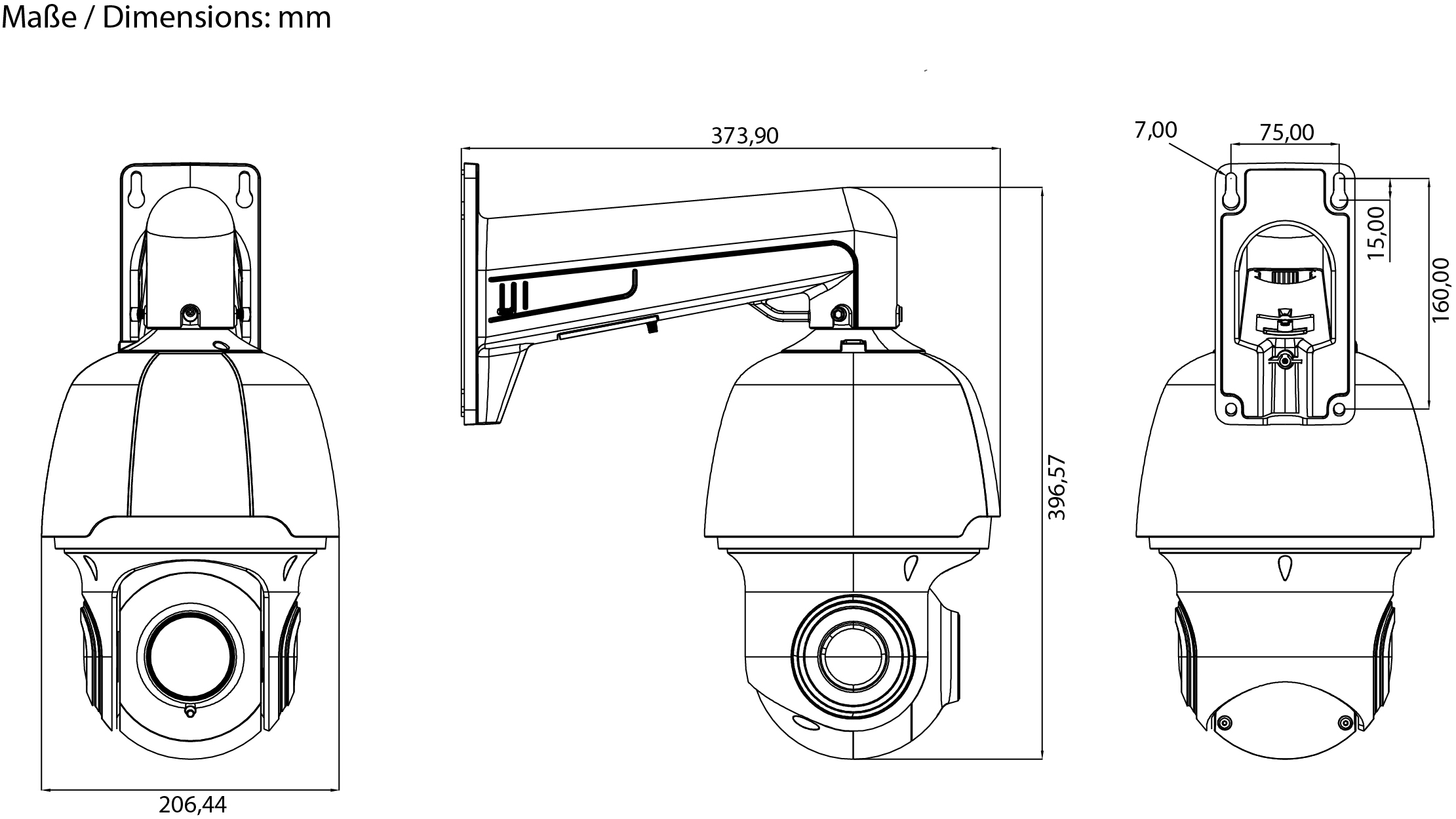 - RJ-45,Audio Eingang,12VDC-Eingang (DC-Buchse),Alarm-Ein/Ausgang,Micro SD Karten Slot 256 GB,Anschlusskabel ca.45cm