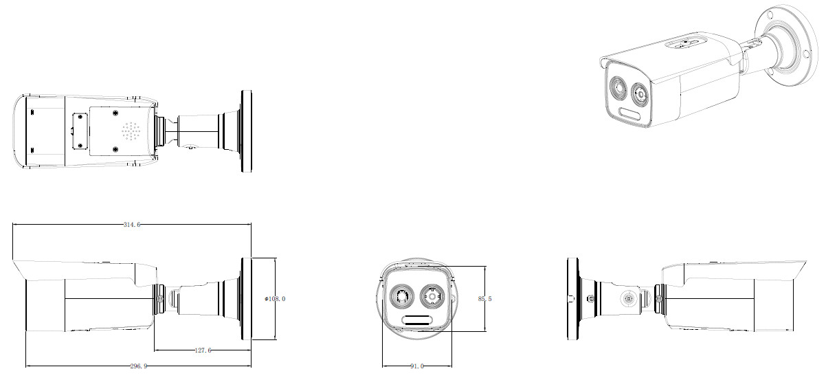 - Feste Brennweite 3,2mm (thermisch) H:56°, V:42°