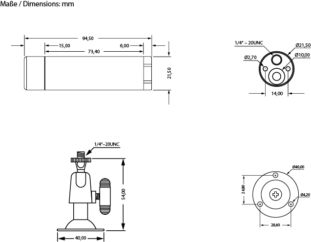 - Anschlusskabel (RJ45) für PoE und Stromversorgung
