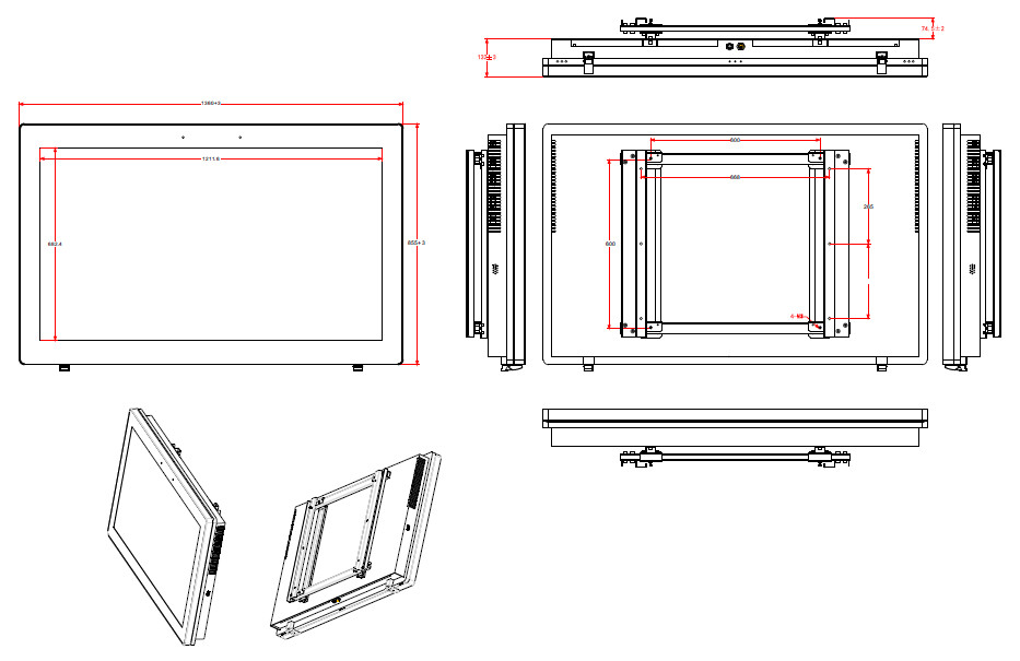 55" (140cm) LCD Monitor, außen, metall, 4K UHD, 3840x2160, DisplayPort, HDMI, 3000nits, IP67/IP65, outdoor
