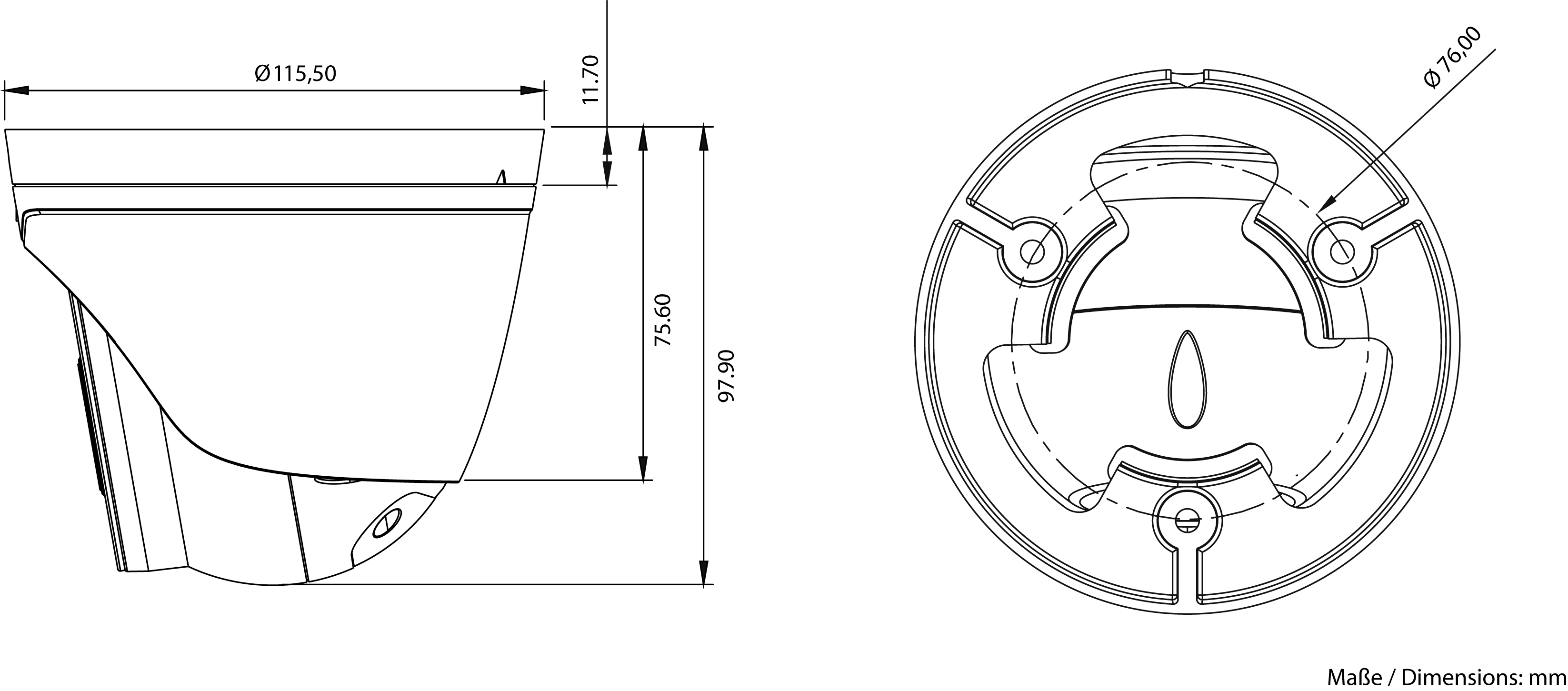 With its robust IP67 aluminum housing, the camera is ideal for outdoor use and can withstand extreme weather conditions. Its compact design and low weight of 575 g enable easy installation on walls or ceilings.