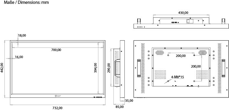 32" (82cm) LCD Monitor FHD, 1920x1080, LED, HDMI, DP, metal cabinet