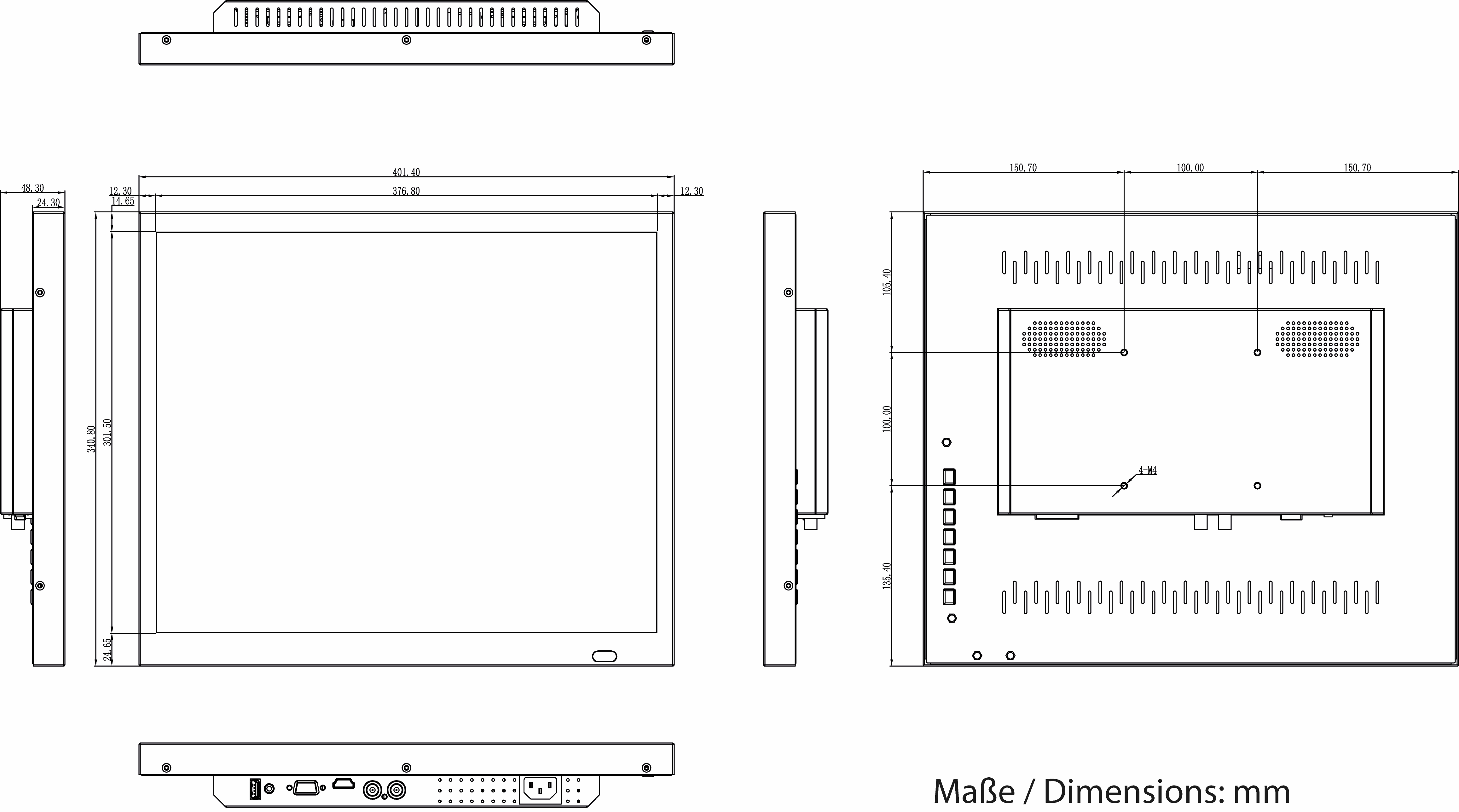 19" (48cm) LCD, Industrial Monitor, 1280x1024, HDMI, VGA, Composite, Protection Glass
