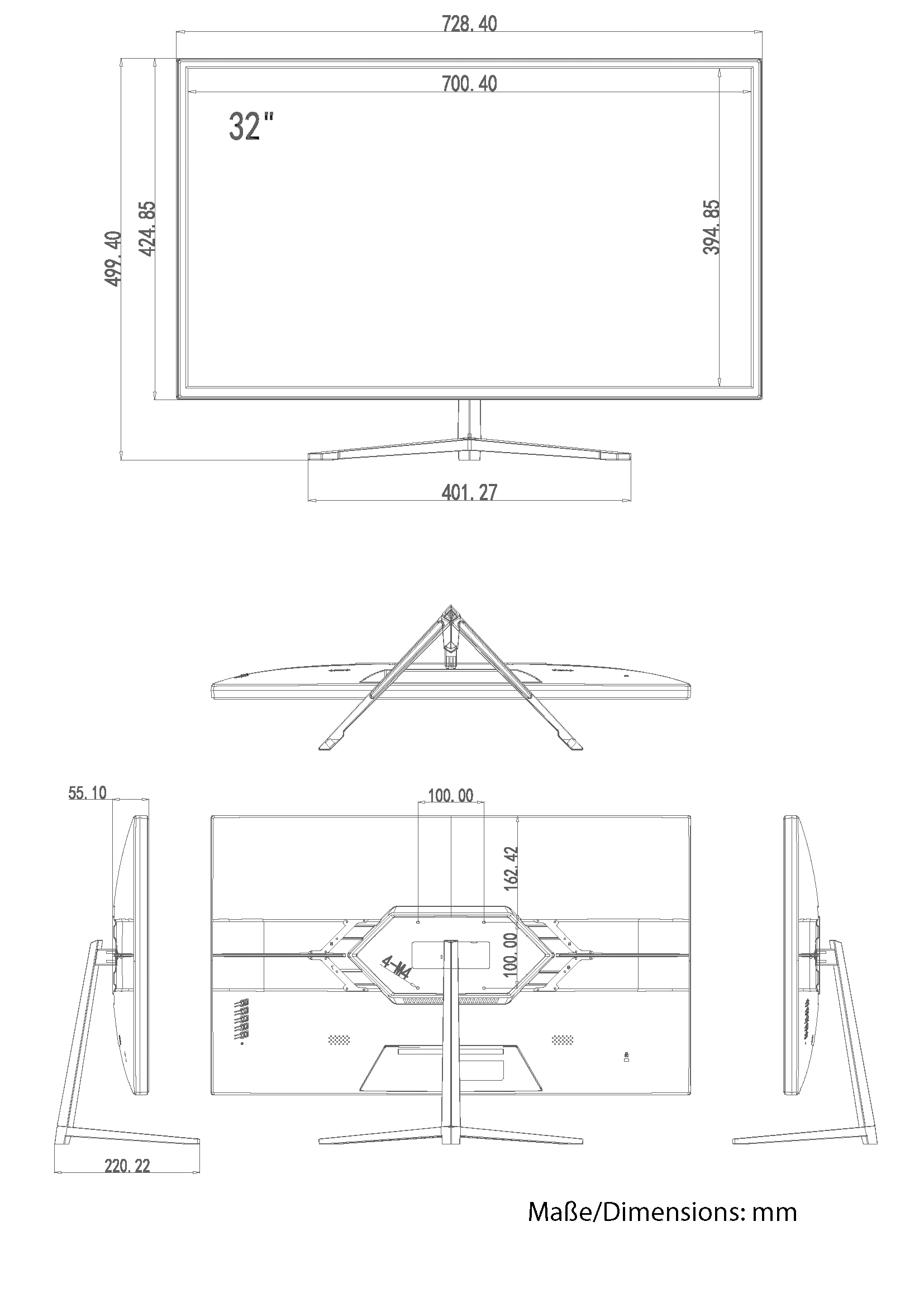 32" (81cm) LCD Monitor, 4K UHD, 3840x2160, LED, USB, DisplayPort, 3xHDMI 2,0